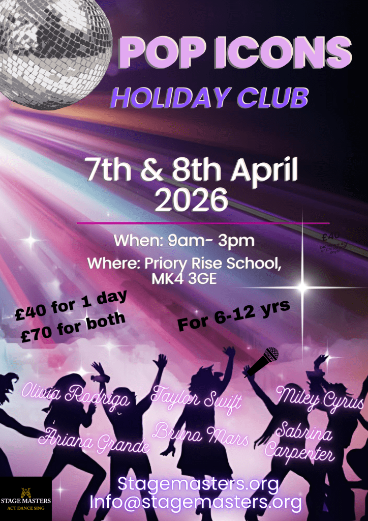 Children will learn choreography to some iconic songs, take part in vocal training, sing songs by pop icons like Taylor Swift, play games, and have lots of fun!